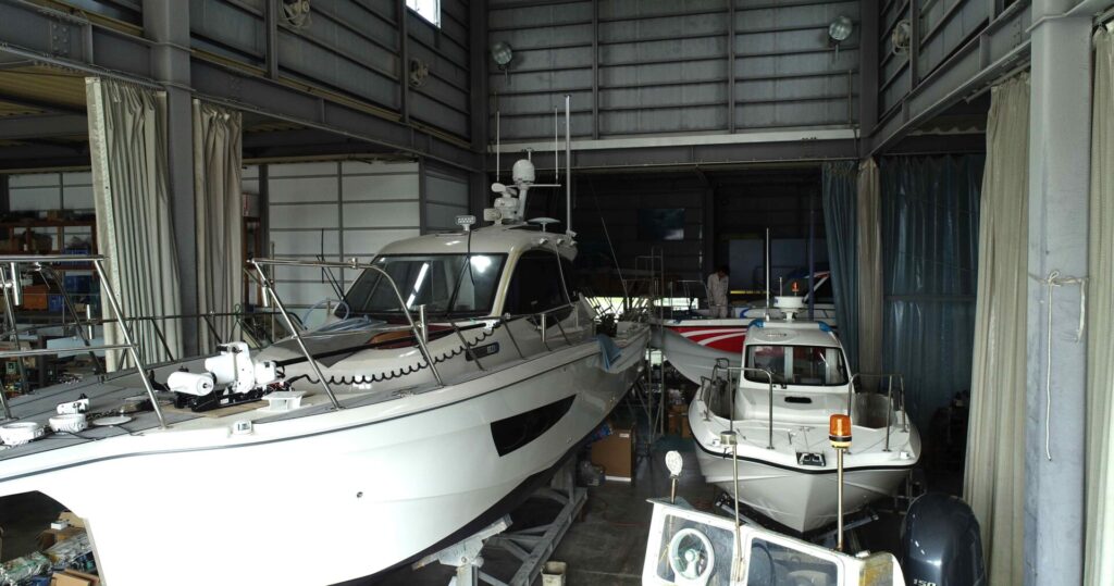 秋から冬にかけてはヤマハの大型和船W43 2隻の大型工事も始まります、多種多様な艤装工事で現場は進化し続けます