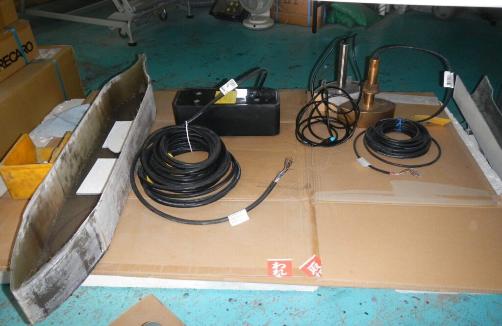 YFR330の船底に取り付ける舟形のFRPケース、最新ハイグレードのガーミン航海計器の振動子3種が装備されます