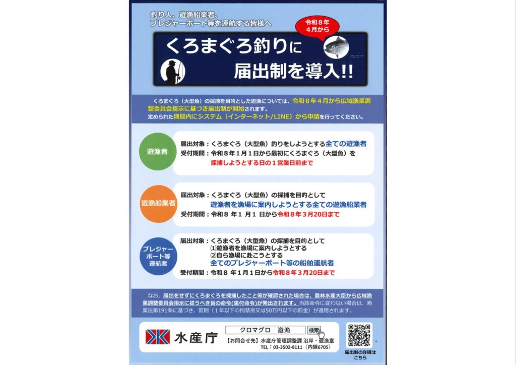 水産庁よりくろまぐろ釣りに届出制を導入したとの通知がありました。